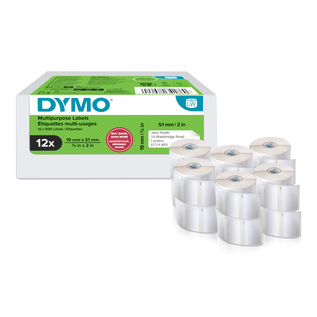 Dymo S0722550 / 11355 19x51mm verwijderbare multifunctionele etiketten Dymo 2234186 volume pack 19mm x 51mm, 12 rollen Dymo 2234184 volume pack 19mm x 51mm, 24 rollen