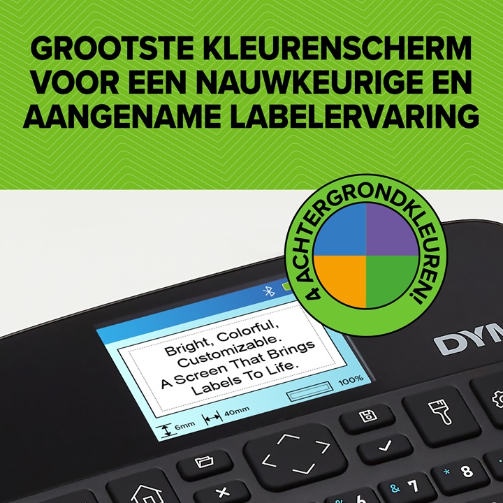 - GROOT KLEURENSCHERM VOOR EEN NAUWKEURIGE EN AANGENAME LABELERVARING - Groot scherm met hoge resolutie, achtergrond aanpasbaar met 4 verschillende kleuren voor een betere leesbaarheid.